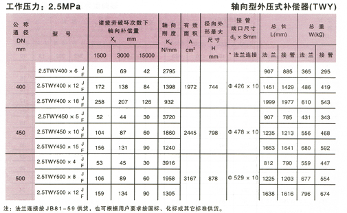 軸向型外壓式波紋補償器(TWY)參數8