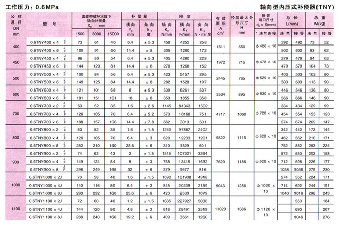 軸向型內壓式波紋補償器(TNY)參數(shù)6