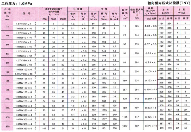 軸向型內壓式波紋補償器(TNY)參數9