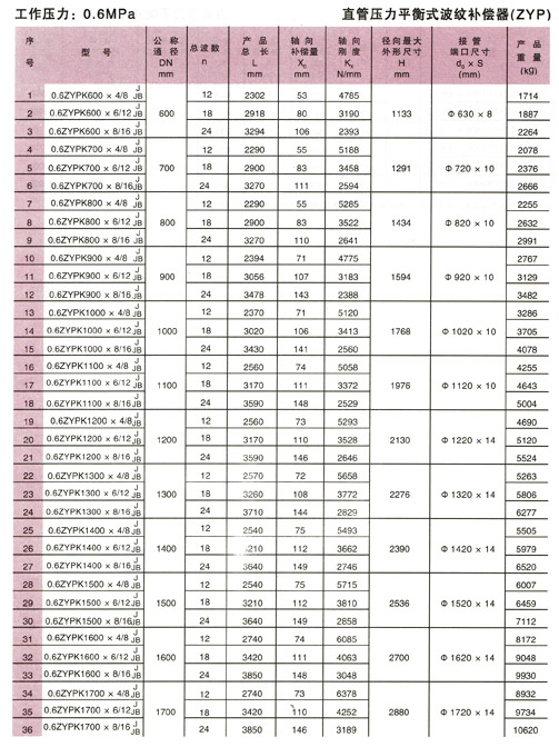 直管壓力平衡波紋補償器(ZYP型) 參數1
