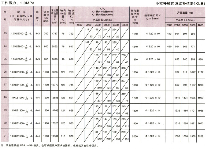 小拉桿橫向波紋補(bǔ)償器(XLB型)產(chǎn)品參數(shù)4