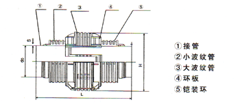 表示公稱通徑為500,工作壓力為0.6MPa,大波紋管為8個波,小波紋管為16個波,連接形式為不銹鋼接管連接的直管壓力平衡式波紋補償器。