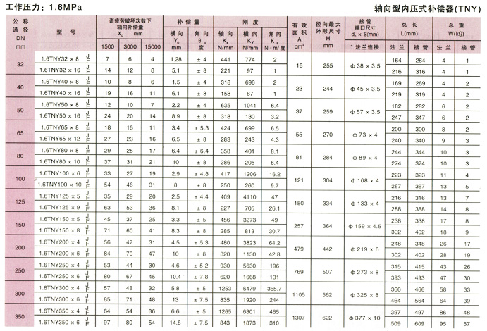 軸向型內壓式波紋補償器(TNY)參數12