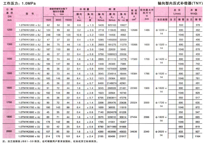 軸向型內(nèi)壓式波紋補(bǔ)償器(TNY)參數(shù)11