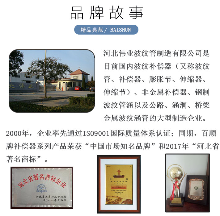 百順牌風機盤管用不銹鋼金屬波紋軟接頭投放市場十二年來,深受用戶贊譽,在北京、天津、廣州、上海、西安、濟南、青島、拉薩、銀川、蘭州、等城市,數以千計的高樓大廈和_重點項目選用了百順品牌。